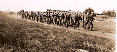 Dad was stationed for a time at Ft. McCoy, WI, not far from where we live today. I am amazed when I trace his steps and see the same places today that he saw so may years ago. He loved to take photographs and in that suitcase in Mom’s closet I found this one taken in February 1943 outside their barracks at Ft. McCoy. It was developed across the river here in La Crosse, WI. These are 4 of dad's friends in his writing left to right, Tony, Jackson, Joe, Jerry, Looks like they are all enjoying a smoke! And here outside the barracks also at Ft. McCoy, prior to the time he left for pilot training, Lou (my dad) and Jobe. No last names and no way to identify these men.